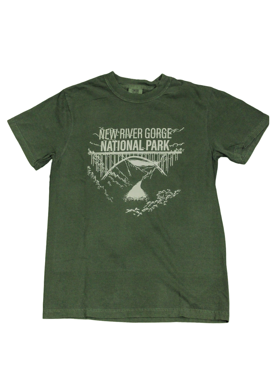 Get yourself this comfortable 100% cotton tee with a nice New River Gorge National Park graphic with the Iconic NRG bridge.